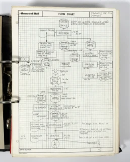 M. M., opérateur, programmeur et comptable, aujourd’hui retraité, a fait don au Musée Bolo d’une perforatrice manuelle Bull (en fonte) de General Electric, ainsi que de son classeur fédéral regroupant l’ensemble de son travail de l’époque. On y découvre des documents rédigés à la main avec une écriture remarquable, des schémas précis dessinés manuellement, des pages de cours annotées, de nombreuses observations techniques, ainsi que quelques spécimens de pièces rares, comme les cartes à bords perforés.