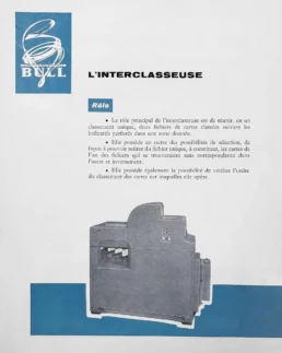 La trieuse de cartes CS100 de Bull, composée de treize compartiments, trie les cartes selon leur nature: heures de travail, matières utilisées, ou autres catégories.