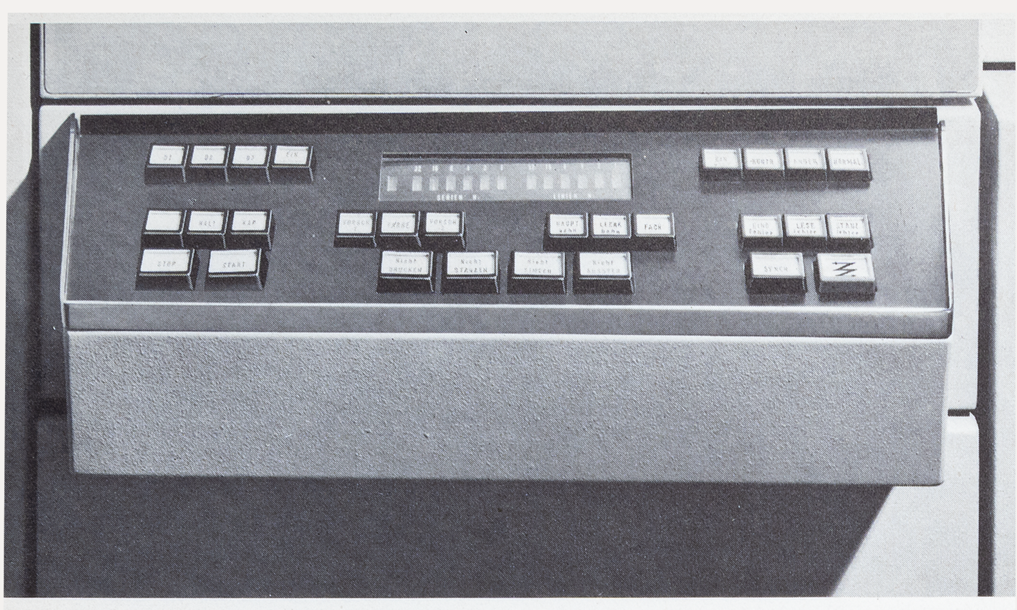 Tel est le caractère logique et naturel de la circulation de l’information dans le Gamma 10; l’information y circule de façon fluide, sans qu’il y ait jamais de goulots d’étranglement ni de files d’attente. Cette fluidité de la circulation garantit la performance qui, avec la sécurité, concourt à l’efficacité de la machine.